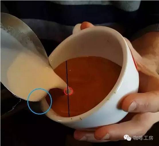 教你用電動打奶器可可粉練咖啡拉花,在家也可以學(xué)拉花:郁金香是很多拉花愛好者喜歡的圖案之一,給大家?guī)硪粋€壓紋郁金香,運用到前幾期講的前推與擺動技巧?! ?:融合至四分滿,三分之一位置選點注入,拉花缸貼住咖啡杯邊緣。