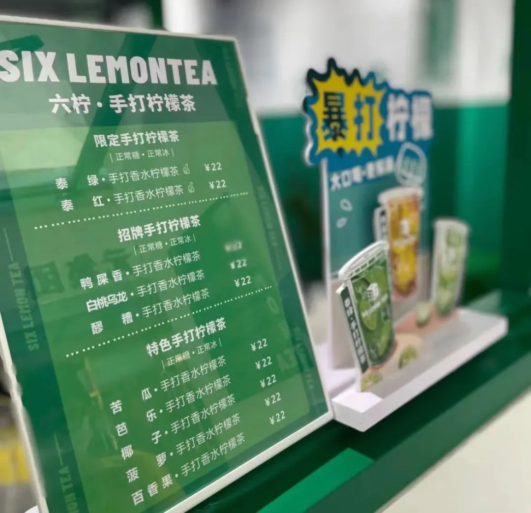 這是一家檸檬茶專門店,單店創(chuàng)業(yè)卻比連鎖品牌賣得貴——六檸總共10款手打檸檬茶,均為22元,定價高于連鎖店十幾元/杯的價格。