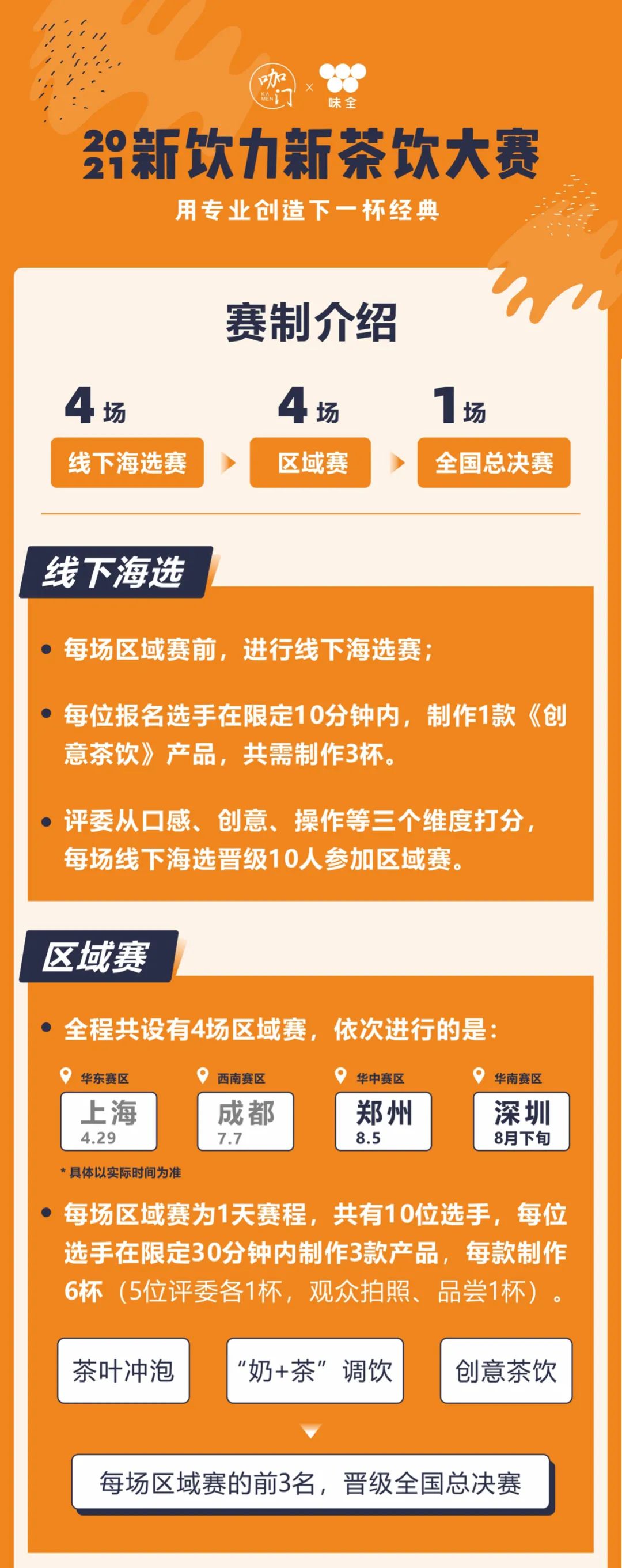 現(xiàn)在鄭州情況基本穩(wěn)定,生活與工作都在有序恢復(fù)。8月5日,咖門主辦、味全冠名的2021新飲力新茶飲大賽華中區(qū)域賽,將在鄭州如期舉辦,觀賽報名已啟動!
