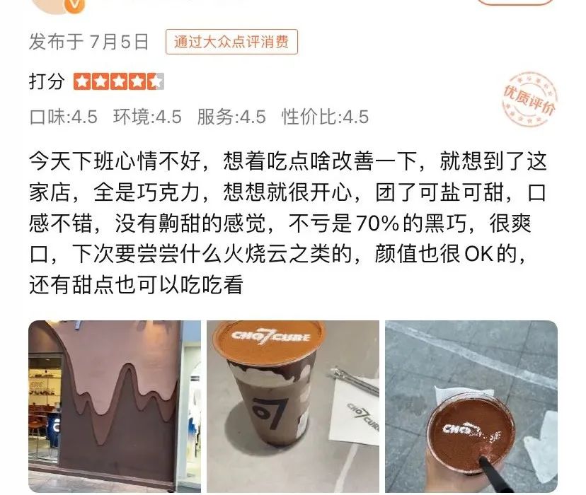 初眾,是中國熱帶農(nóng)業(yè)科學(xué)院香料飲料研究所的研究員,研究可可多年,按照初眾的預(yù)估,可可在國內(nèi)的市場份額至少是百億級的,但更多的是用于烘焙,在飲品領(lǐng)域還有非常大的開發(fā)空間。1.它更讓人“快樂”、“上頭”和奶茶一樣,可可中含有的可可堿,也是一種能讓人心情愉悅的物質(zhì)。上文提到的南京巧可,品牌slogan是“百分之70進口黑巧,百分之百治愈此刻”。社交平臺上,關(guān)于這家店評論多是“人間治愈”、“一口上頭”、“粉紅色泡泡飛起”等。