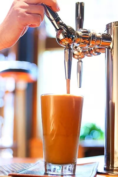 水龍頭咖啡(氮氣咖啡) 咖啡除了傳統(tǒng)選擇外,還有歐美大熱的Coffee on Tap,即如生啤那樣,從水龍頭出來的冷泡咖啡,即是水龍頭咖啡。由于加入氮氣,倒進杯中時,會泛起一層白色泡沫,成杯黑啤一樣。喝下去就口感幼細輕盈,清新爽快,最適合夏天飲!