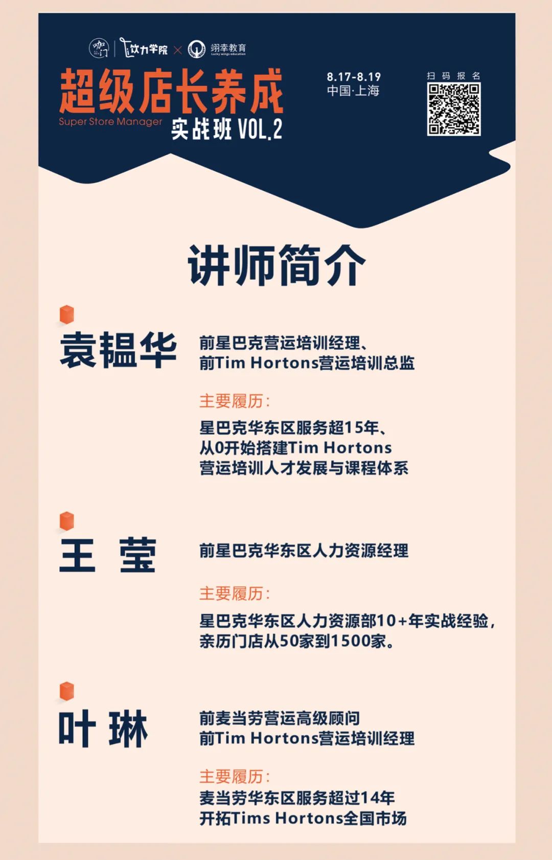 在競爭中勝出,關(guān)鍵在店長:要掌握開店的系統(tǒng)能力,管好“人、錢、事”,會用人、能排班、能看財務(wù)報表,能帶領(lǐng)一家店賺錢。8月17日~8月19日,首期爆滿的“超級店長養(yǎng)成”實戰(zhàn)課升級回歸!