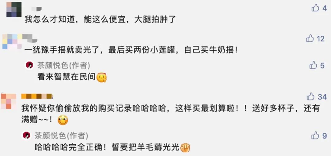優(yōu)惠力度刺激了大家買買買的情緒。在茶顏悅色618大促的推文的評(píng)論中,不少消費(fèi)者表示“活動(dòng)力度大”,“劃算、便宜”,“要拼手速搶了”。