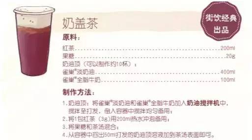 茶湯和綿密奶油頂讓飲品界限分明,入口奶香四溢,緊跟清爽紅茶,層次分明,好玩好喝。好的飲品店,制作奶油頂自然首選有口皆碑的優(yōu)質(zhì)牛奶,如雀巢淡奶油,原因無非2個:1.易操作。只需很好的搖動次數(shù),極易打發(fā),可以想見,耗時少效率高。2.原料利用率高。連續(xù)出杯多,殘留少,自然成本下降,品質(zhì)提升。而源于天然乳脂的安全健康保證,也讓優(yōu)質(zhì)牛奶成為飲品店的品質(zhì)助力。試想,在時下追求美味與健康兼得的飲食潮流之下,更好更放心的品質(zhì),自然會引來更多消費者的追捧。