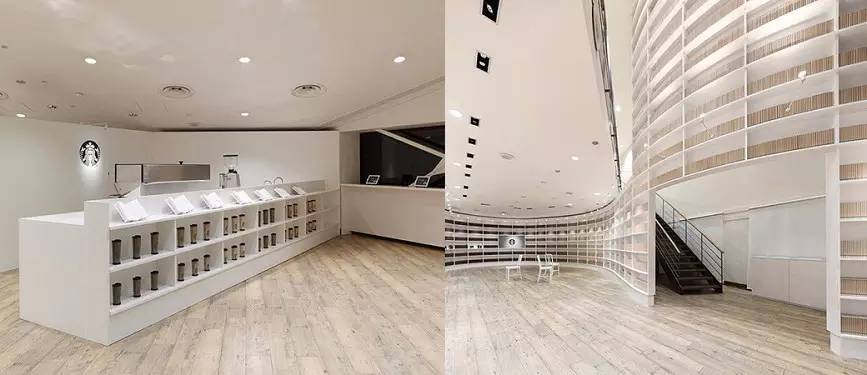不過這其實并非星巴克第一次在日本搞全白咖啡店了。2012 年的時候,它們就曾牽手 nendo 帶來一家以“星巴克濃咖啡之旅”為主題的快閃店,以象牙白地板、書架營造安靜溫暖的感覺,然后引導(dǎo)消費者去挑書、閱讀了解咖啡文化、換購咖啡,一時間在全球成為話題。