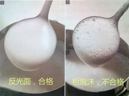 - 第一種邊打發(fā)邊打綿的方式,制作出來的牛奶泡組織會較細致柔軟,但是牛奶泡的綿綢度會稀一點,較不易產生有綿密彈性的牛奶泡組織,但是拉花的圖形比較容易形成;第二種方式先打發(fā)牛奶再打綿牛奶泡組織的綿綢度較高,可以產生QQ有彈性的牛奶泡,不過較容易在打發(fā)階段,而要制作拉花的圖案難度會較高,不過沖煮出的咖啡拉花口感會較綿密?! 〗酉聛砦覀兙歪槍@二種方式作較詳細的解說下: 打奶泡邊打發(fā)邊打綿 1、將蒸汽管放置于鋼杯的中心點,斜右下方45度靠鋼杯杯緣處,深度約1公分的地方。 2、打開蒸汽管蒸汽,鋼杯慢慢往下移動,并使牛奶呈現旋渦方式轉動。