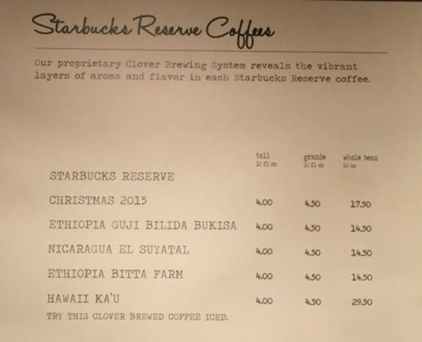 據(jù)公司介紹,這家咖啡館使用星巴克精心打造的Clover 釀造系統(tǒng),在這里,咖啡師能“制作一杯口味平衡、香味濃醇的完美咖啡?!边@家咖啡館還提供早餐和午餐選擇。星巴克公司這樣形容這家店:當(dāng)顧客踏進(jìn)這家店,就能慢慢融入店內(nèi)的氣氛,里面擺放的復(fù)古地毯和家具都是從當(dāng)?shù)氐亩旨揖叩晏詠淼???Х劝膳_(tái)前方還刻有一塊定制的三維紐約城抽象地圖,由硬紙板制成的紋理天花板,還有夾在背襯板上的手寫菜單。當(dāng)被問及定價(jià)如此之高的原因時(shí),星巴克發(fā)言人 Haley Drage 說:“Reserve 咖啡是非常獨(dú)特的,每個(gè)批次的產(chǎn)量都非常小,有的甚至是絕版。我們從長(zhǎng)計(jì)議,根據(jù)特定的產(chǎn)品和市場(chǎng),為這些稀有咖啡制定價(jià)格。”