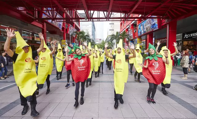 開幕首日,除了舉行隆重的水果舞吸引眼球外,Jamba Juice也展現(xiàn)大手筆,贈送臺灣首位消費者一年份免費果昔、前200名消費者半年至一個月不等的免費果昔,吸引大批“果粉”星夜排隊。