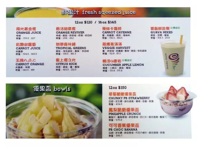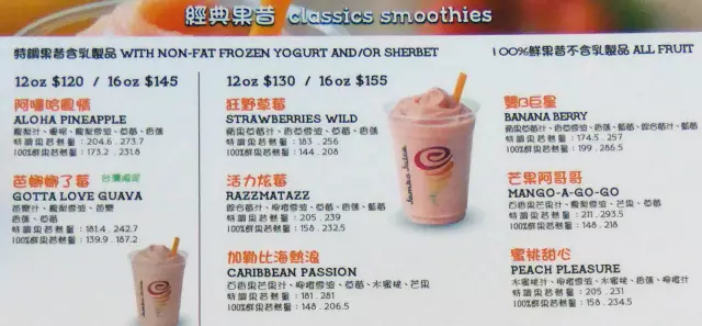 Jamba Juice共有四大類水果食品可供選擇: