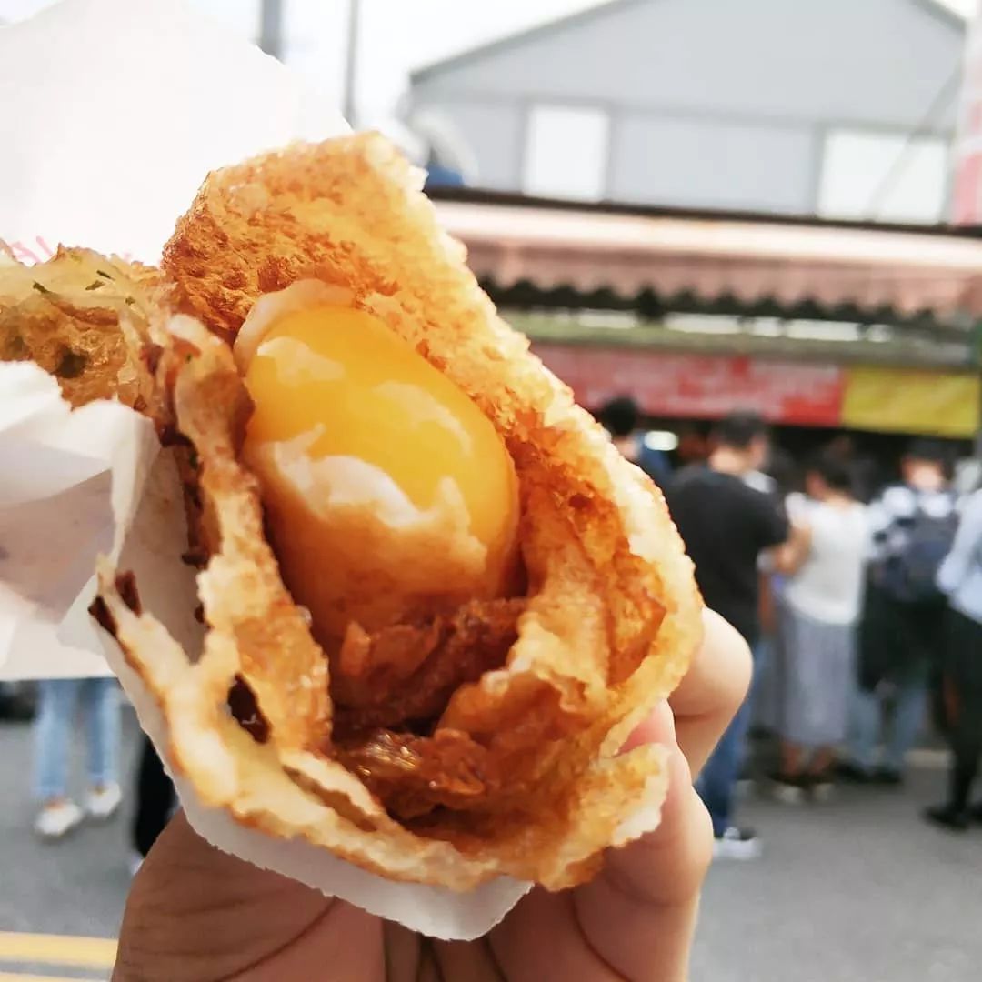 這次挑選的炸蛋蔥油餅,源于臺灣花蓮,與傳統(tǒng)蔥油餅不同的是,炸蛋蔥油餅的餅皮更加外酥內(nèi)軟,進(jìn)一步襯托出輔料以及醬料的香味,加上高溫油炸溏心蛋的爆漿口感,能夠在第一口就抓住食客的味蕾。