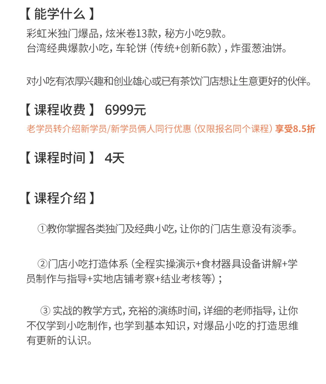 經(jīng)過層層篩選及考量,優(yōu)閑狐小吃課自8月開始,會在原有課程基礎(chǔ)上一方面保留彩虹米的特色產(chǎn)品,一方面加入江國英老師的臺灣小吃課程,讓學(xué)員所學(xué),都是能夠俘獲味蕾,并讓顧客口耳相傳的爆款小吃~