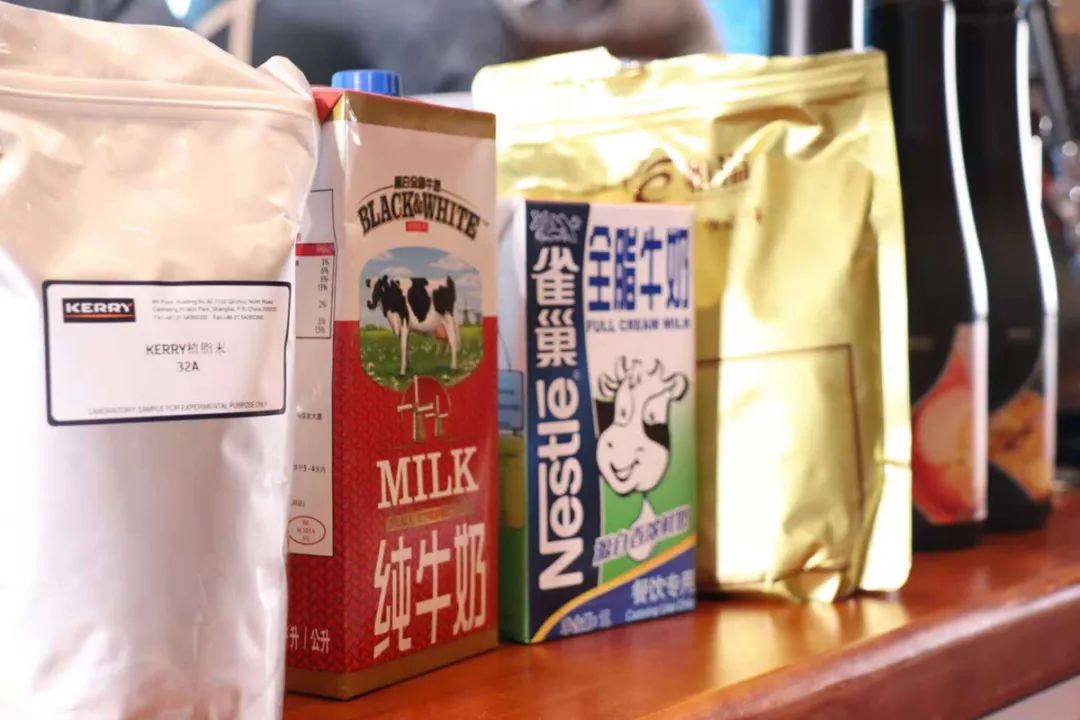 淡奶油和純牛奶很少和植脂末出現(xiàn)在同一款產(chǎn)品中,這次選用kerry32A具有突顯茶感又不失奶味的植脂末,是為了突顯烏龍茶香,淡奶油和牛奶的加入是為了更好地連接和融合植脂末與茶,突顯整杯產(chǎn)品的質(zhì)感。