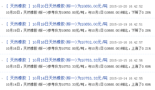 為此,快報(bào)在今天的17點(diǎn)在生意社網(wǎng)站專(zhuān)門(mén)查詢了橡膠價(jià)格,該網(wǎng)站實(shí)時(shí)報(bào)價(jià)顯示:天然橡膠(標(biāo)一)為10650.00元/噸 。