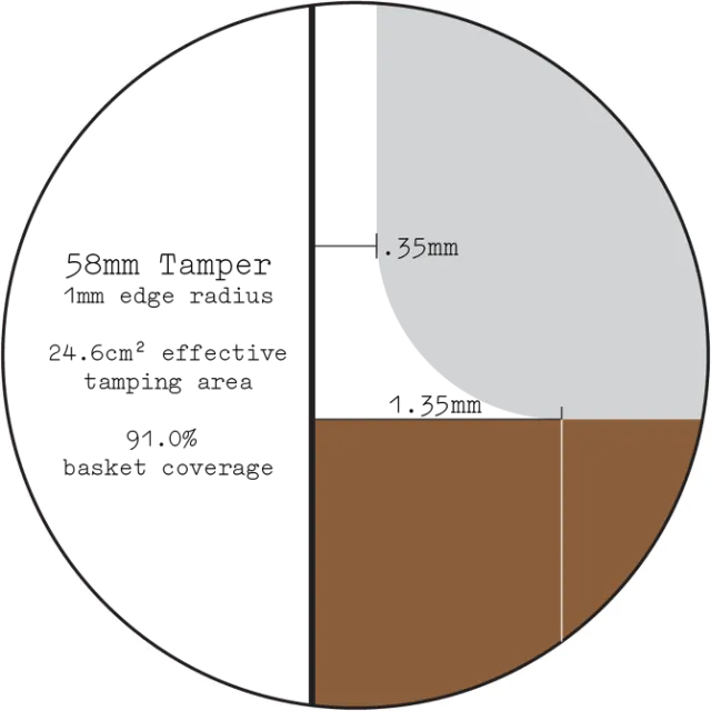 可以看到粉碗,壓粉器錘底,分水網(wǎng)都是弧面的,而且完全能夠吻合!那可以想象到的是來自弧面分水網(wǎng)的水透過壓成弧面的咖啡粉,從弧面的粉碗中流出來。以上講完了弧底和平底的區(qū)別,也就是說機(jī)器適配什么樣的分水網(wǎng)和什么樣的粉碗,我們就來選擇什么樣的壓粉器錘底。3.關(guān)于壓粉器尺寸的選擇:以下為一個(gè)58mm平底壓粉器錘53mm平面錘底