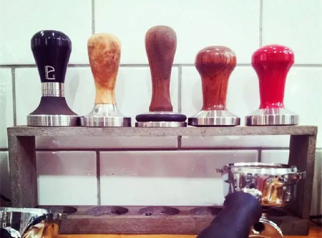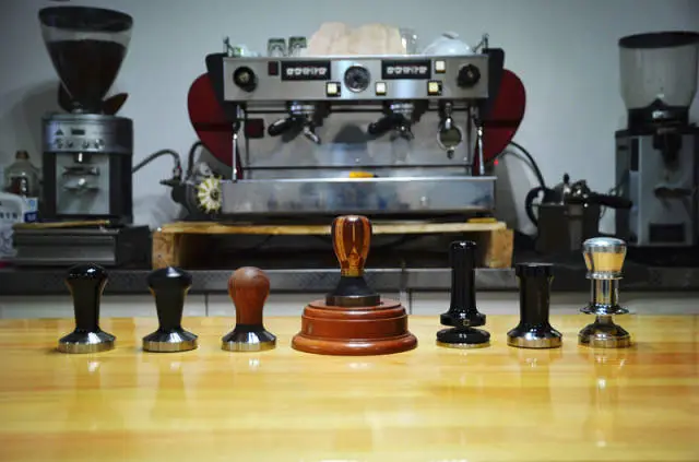 從左往右依次為,RB黑色金屬把手58mm平底錘底,RB黑色磨砂金屬把手58mmC-Ripple錘底,國產(chǎn)巴西花梨木木質(zhì)把手58.2mm平底錘底,Pullman跳棋把手適配La Marzocco粉碗American Curve錘底,德國Concept-art金屬可調(diào)壓力58mm平底錘底,La Marzocco原裝金屬把手American Curve錘底,日本產(chǎn)鋁合金把手53mm定量壓粉器。如果大家有過定制Pullman壓粉器的經(jīng)歷,Pullman官網(wǎng)上都會(huì)提示你用的什么機(jī)器,什么粉碗,適配什么錘底,你個(gè)人可以選擇適合自己的把手。顯而易見,錘底要適合機(jī)器和粉碗,把手要適合咖啡師。
