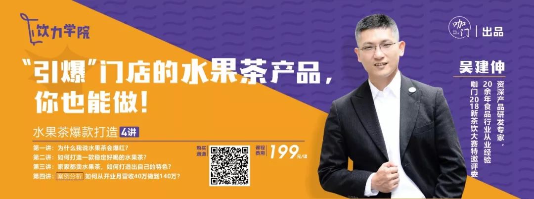冷飲支付一年增長(zhǎng)230%,00后正在成為“奶茶新人”有茶:做爆“棘手”水果茶水果茶是個(gè)美麗的陷阱。這個(gè)一出現(xiàn)就備受歡迎的新鮮品類(lèi),背后隱藏著許多管理暗傷。比如,水果貯存、處理流程復(fù)雜,標(biāo)準(zhǔn)化程度低,易造成損耗、增加成本等等。而主打水果茶的品牌有茶,卻在深圳那個(gè)競(jìng)爭(zhēng)激烈的新茶飲市場(chǎng),打出了自己的一方天地,曾創(chuàng)下單店最高日銷(xiāo)2000+杯的記錄。1000cc/杯的水果茶這個(gè)品牌是如何一炮而紅,并持續(xù)處理好水果茶的棘手問(wèn)題的?點(diǎn)擊藍(lán)字,了解有茶更多內(nèi)容:專(zhuān)訪 | 有茶創(chuàng)始人:日單2000杯背后,水果茶如何做標(biāo)準(zhǔn)化突圍?煮葉:用星巴克模式做原葉茶連鎖在資本對(duì)茶飲市場(chǎng)趨于保守的2018年,依舊有幸運(yùn)兒誕生。4月份,茶飲品牌煮葉宣布完成數(shù)千萬(wàn)元Pre-A輪融資。和大多數(shù)打造新鮮、時(shí)尚感的門(mén)店不同,煮葉將自己定位為一家做中國(guó)原葉茶、傳遞茶文化的品牌。原研哉的設(shè)計(jì),無(wú)印良品式的“性冷淡”,門(mén)店設(shè)計(jì)上的獨(dú)特風(fēng)格是煮葉最先被關(guān)注的焦點(diǎn)。而主打原葉茶、用星巴克模式做連鎖,是煮葉的特色和秘笈。獨(dú)特的門(mén)店風(fēng)格點(diǎn)擊藍(lán)字,了解煮葉更多內(nèi)容:融資數(shù)千萬(wàn)!這個(gè)主打原葉茶的品牌,用“星巴克+無(wú)印良品”碰撞出怎樣的中國(guó)茶?滬上阿姨:用“小米模式”開(kāi)出千家茶飲店5年,1006家店。這個(gè)成績(jī)放眼整個(gè)飲品業(yè),或許不夠生猛。但要把加盟商存活率做到96%,能做到的品牌屈指可數(shù)。滬上阿姨現(xiàn)煮茶飲第一家25平的店開(kāi)業(yè)時(shí),就做到月入30萬(wàn)的銷(xiāo)量。后來(lái),他是如何一步一步煉成“茶飲界的小米”的?重視產(chǎn)品和運(yùn)營(yíng)點(diǎn)擊藍(lán)字,了解滬上阿姨更多內(nèi)容:專(zhuān)訪 | 開(kāi)到第1000家店,他終于用“小米模式”煉成茶飲品牌!CoCo都可的升級(jí)轉(zhuǎn)型之路對(duì)于深耕行業(yè)10余年的品牌來(lái)說(shuō),過(guò)去做得再好,如今都要接受新時(shí)代的檢驗(yàn)。CoCo都可就做得不錯(cuò),順應(yīng)新的消費(fèi)趨勢(shì)不斷升級(jí)創(chuàng)新,開(kāi)大店、增加咖啡產(chǎn)品線。但它背后的邏輯是什么?瞄準(zhǔn)咖啡市場(chǎng),擴(kuò)大產(chǎn)品線點(diǎn)擊藍(lán)字,了解CoCo都可更多內(nèi)容:CoCo都可的升級(jí)實(shí)驗(yàn):開(kāi)更大的店,賣(mài)更多的咖啡CoCo都可持續(xù)升級(jí):新開(kāi)240平大店,增加松餅產(chǎn)品線這是春節(jié)前咖門(mén)的最后一期推送了,非常感謝大家這一年的陪伴。祝各位新年快樂(lè),來(lái)年生意興?。「魑恢蛋嗟男』锇樾量嗬?!2019年,大年初七見(jiàn)!點(diǎn)擊藍(lán)字,了解更多品牌專(zhuān)訪:奈雪彭心|快樂(lè)檸檬吳伯超|Seesaw宗心曠喜茶聶云宸|鷹集王駿桃|蜜雪冰城張紅甫古茗王云安|逅唐韓剛|汴京茶寮藏北關(guān)茶明珠|精品咖啡之神甜口護(hù)|TeavanaTeasoon江佳道|嫩綠茶廖韋佳|因味茶繆欽雕刻時(shí)光莊崧冽|參差咖啡王森魚(yú)眼咖啡孫瑜|連咖啡張洪基|小罐茶杜國(guó)楹識(shí)別圖片二維碼,了解更多內(nèi)容手把手教你注冊(cè)/保護(hù)商標(biāo):水果茶的爆款打造(4講):2019萬(wàn)有飲力年度大會(huì)實(shí)錄視頻:— END —統(tǒng)籌:啡姐 | 編輯:政雨 | 視覺(jué):JIRFEI文章為咖門(mén)原創(chuàng),未經(jīng)授權(quán)嚴(yán)禁轉(zhuǎn)載。