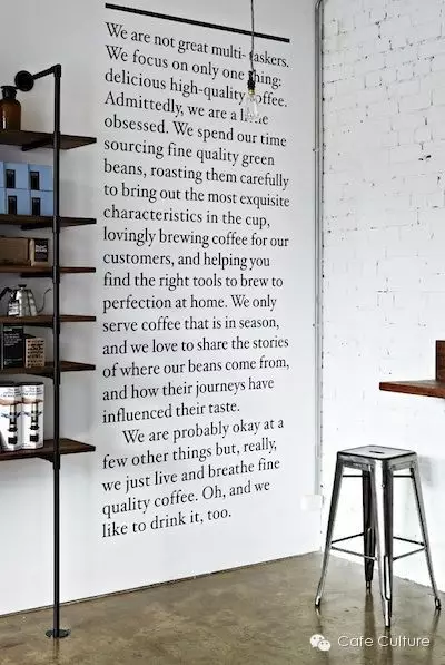 被動(dòng)傳播被動(dòng)傳播更多以文字形式體現(xiàn),其方式可以是海報(bào)、宣傳冊(cè)、操作手冊(cè)、杯墊亦或是廣告牌。當(dāng)然,你也可以創(chuàng)新被動(dòng)傳播的方式方法,例如在咖啡廳吧臺(tái)上擺放一排玻璃罐,每個(gè)玻璃罐里裝上處于不同烘焙階段的咖啡豆,這樣顧客就能直觀地了解咖啡豆在烘焙過(guò)程中是如何產(chǎn)生變化的。你還可以在每個(gè)罐子上面附上文字說(shuō)明。這些傳播方式不僅效果很好,而且對(duì)咖啡廳有一定的裝飾作用。最重要的是,顧客可以自由選擇他們想要了解的內(nèi)容,從而使信息接受起來(lái)更加容易,印象也更加深刻。此外,被動(dòng)傳播還能夠?yàn)橹鲃?dòng)傳播創(chuàng)造寶貴機(jī)會(huì)。因此,被動(dòng)傳播對(duì)于每一家咖啡廳而言都至關(guān)重要。顧客在獲取信息之后,會(huì)主動(dòng)向咖啡師詢問(wèn)他們不懂的地方,還會(huì)自己在網(wǎng)上搜索相關(guān)信息。沒(méi)錯(cuò),簡(jiǎn)單的一個(gè)卡片或是一張宣傳海報(bào)就能引領(lǐng)顧客們進(jìn)入精品咖啡的世界。作為專業(yè)人士,你需要謹(jǐn)慎斟酌被動(dòng)傳播的方式,嚴(yán)格審核宣傳內(nèi)容,確保信息生動(dòng)豐富,最大程度上地滿足顧客們的好奇心。