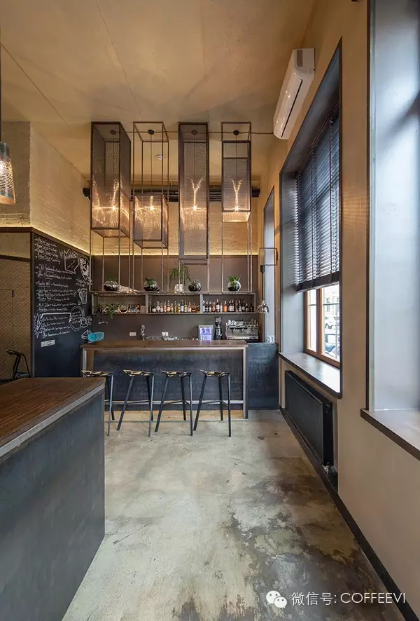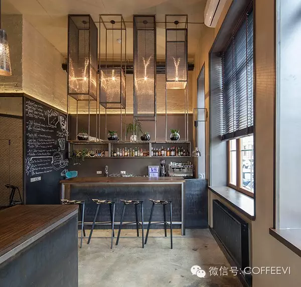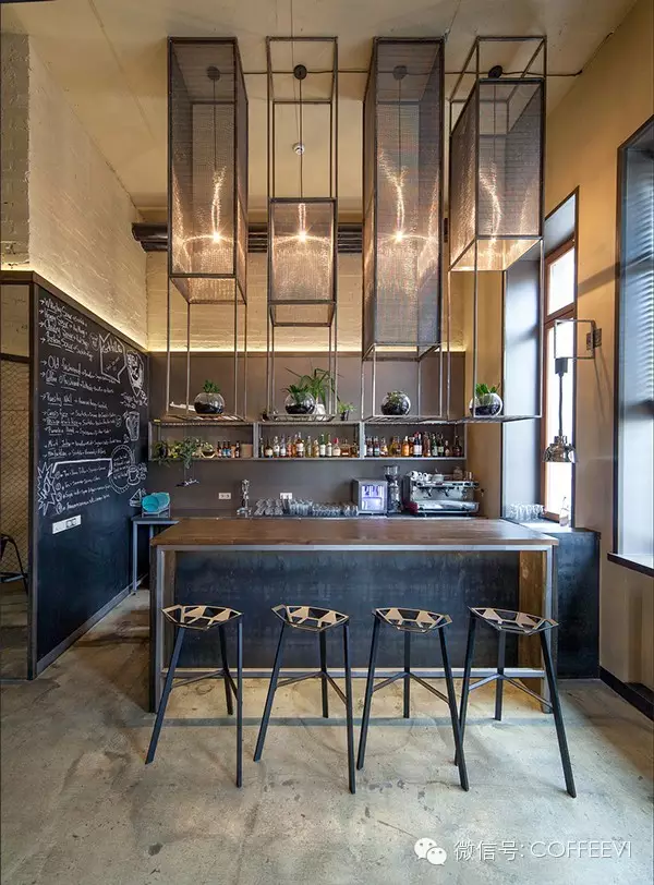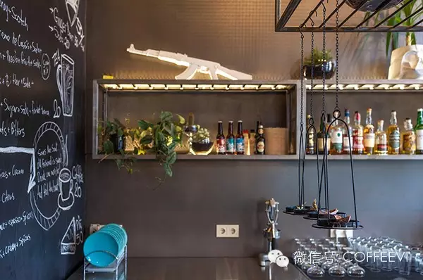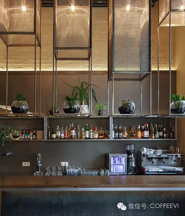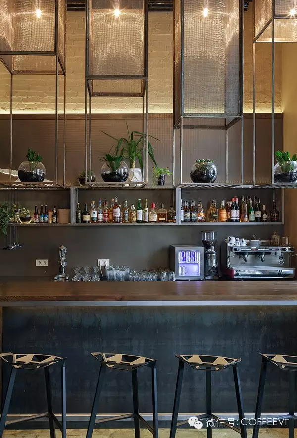 這是一個威士忌酒吧吧臺我覺得是一個可以借鑒的部分比較適合小型咖啡館目前不少咖啡館的吧臺為了讓視覺更豐富往往添加太多非功能性的硬裝其實一個到位的造型已經(jīng)可以突出個性復(fù)雜的東西控制不好就是凌亂