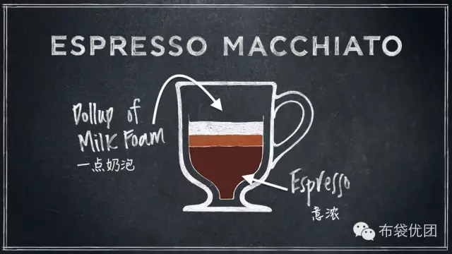 另一個叫做牛奶瑪奇朵Lattè Macchiato,這個是意式瑪奇朵的變種,而大家所熟知的 焦糖瑪奇朵Caramel Macchiato ,只是牛奶瑪奇朵下屬的一個分支而已。Macchiato是意大利語,翻譯成英文就是dollop,翻譯成中文就是“ 斑點痕跡”。那么這個“斑點”用在咖啡中是什么意思呢?人們對它有兩種理解。在意式瑪奇朵中,“斑點”表示“一個斑點”的牛奶奶泡;而在牛奶瑪奇朵中,“斑點”表示“一個斑點”的意式濃縮。
