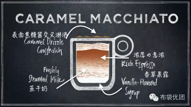 03焦糖瑪奇朵Caramel Macchiato=拿鐵瑪奇朵+底部兩勺香草果露+表面的交叉淋灑焦糖醬