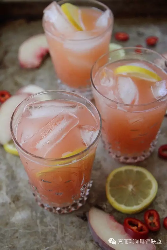 材料:兩個(gè)大的白桃(去皮去核切塊)、1個(gè)墨西哥指天椒(可選)、1杯糖、4杯飲用水、1杯新鮮檸檬汁制作步驟:1.中火加熱白桃肉、辣椒、糖和2杯水,大概煮5分鐘左右,至到桃肉變軟,砂糖融化,接著離火晾涼。2.倒入攪拌機(jī)中攪打至細(xì)膩。3.倒入水瓶中,加入冰塊、檸檬汁和2杯水,攪拌均勻,然后放冰箱冷藏。喝的時(shí)候再加冰塊、白桃片和檸檬片裝飾即可。