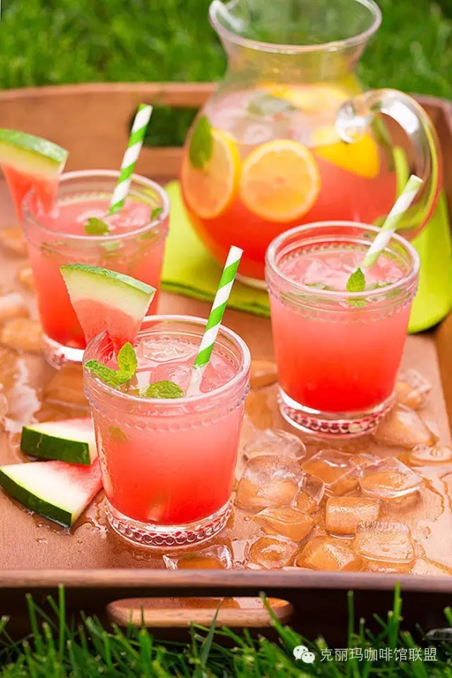 材料:1/2杯砂糖、1杯藍(lán)莓、3/4杯新鮮檸檬汁、6杯飲用水制作步驟:1.將砂糖、1杯水倒入小鍋,中火加熱并不斷攪拌至砂糖融化,加入藍(lán)莓,小火燜煮到藍(lán)莓變爛,大概需要3-4分鐘。2.將步驟1的混合物用濾網(wǎng)過濾,然后晾涼。3.將步驟2過濾后的液體、檸檬汁、5杯飲用水混合,然后放入冰箱冷藏。4.喝的時(shí)候加入幾顆藍(lán)莓和冰塊即可。西瓜檸檬水