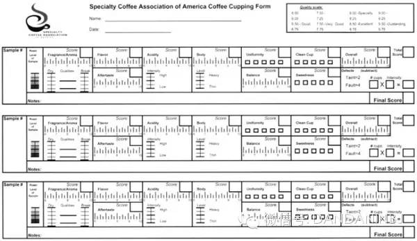 除了評介的標(biāo)準(zhǔn)外,杯測時咖啡豆和水的比例也是有規(guī)定的:水的比例:8.25克的咖啡豆配合150ml的水,水溫應(yīng)92.2 - 94.4°C;杯測的杯子:應(yīng)當(dāng)使用鋼化玻璃或陶瓷材料,杯測容量:207ml到266ml之間,杯子高度:3至3.5英寸杯口直徑:76 – 89mm,所有杯子應(yīng)當(dāng)使用相同的體積,尺寸和材料制造,有蓋子。杯測用的湯匙:要使用抗靜電的金屬材質(zhì)(大多使用不銹鋼),每匙容量能有4-5ml。對烘焙咖啡豆當(dāng)然也是有標(biāo)準(zhǔn)的,就是要符合我上面所提到的Agtron艾格壯#55-#60之間,包含杯測時豆子磨的粗細(xì),豆子烘好24小時之內(nèi),甚至于杯測時的房間大小、杯測桌的大小、房間里的通風(fēng),沖咖啡的水質(zhì)都有標(biāo)準(zhǔn),最大限度的把可控因素都設(shè)定在一個范圍內(nèi),盡可能讓杯測出來的數(shù)質(zhì)是客觀的。