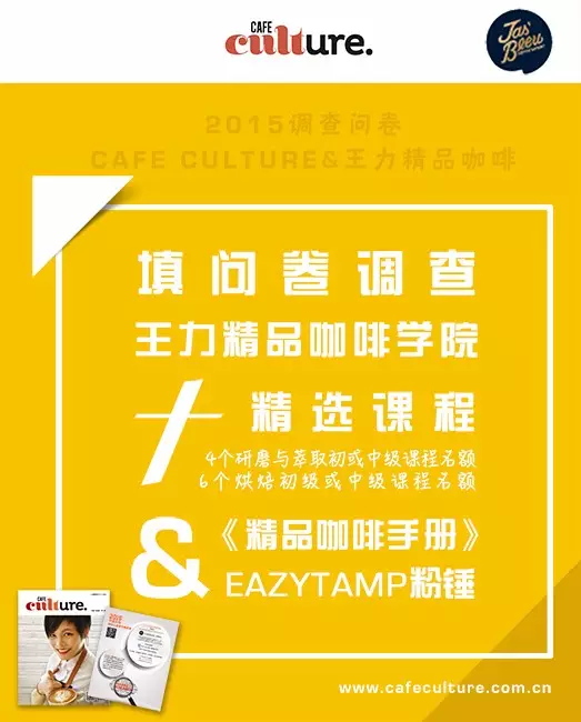 2015咖啡行業(yè)市場(chǎng)調(diào)查Cafe Culture 在去年8與月啟動(dòng)了《中國(guó)咖啡餐飲從業(yè)者市場(chǎng)調(diào)查》, 意在揭示中國(guó)咖啡餐飲行業(yè)發(fā)展現(xiàn)狀以及未來趨勢(shì)。來自各地的咖啡從業(yè)者紛紛積極響應(yīng),完成了首次的突破。今年7月,我們?cè)俅螁?dòng)了這項(xiàng)行業(yè)調(diào)查,短短一個(gè)月內(nèi),就有100多人積極參與了進(jìn)來。今天,我們誠(chéng)邀你也來參與調(diào)查,代表中國(guó)咖啡行業(yè),進(jìn)行發(fā)聲!調(diào)查網(wǎng)址:www.surveymonkey.com/r/chinasurvey2015 參與方式:復(fù)制以上網(wǎng)址,打開網(wǎng)頁(yè)即可填寫在線調(diào)查問卷花費(fèi)15分鐘填寫問卷調(diào)查,就有機(jī)會(huì)免費(fèi)獲得王力精品咖啡學(xué)院課程!還有Cafe Works提供的《精品咖啡手冊(cè)》以及Eazytamp粉錘等著你!或點(diǎn)擊“閱讀原文”:進(jìn)入調(diào)查問卷~