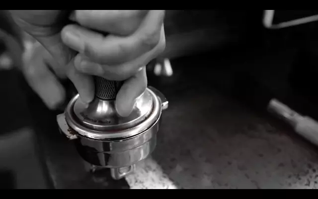 3利用底部平滑的粉錘,將咖啡粉壓平、壓緊、壓光滑
