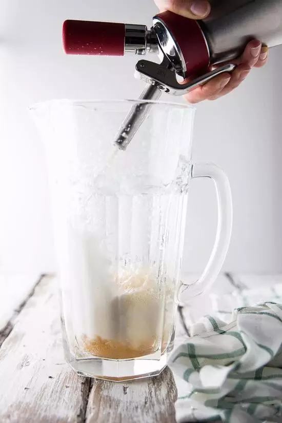 5.將姜絲牛奶倒入飲品中,加入些冰塊即可。