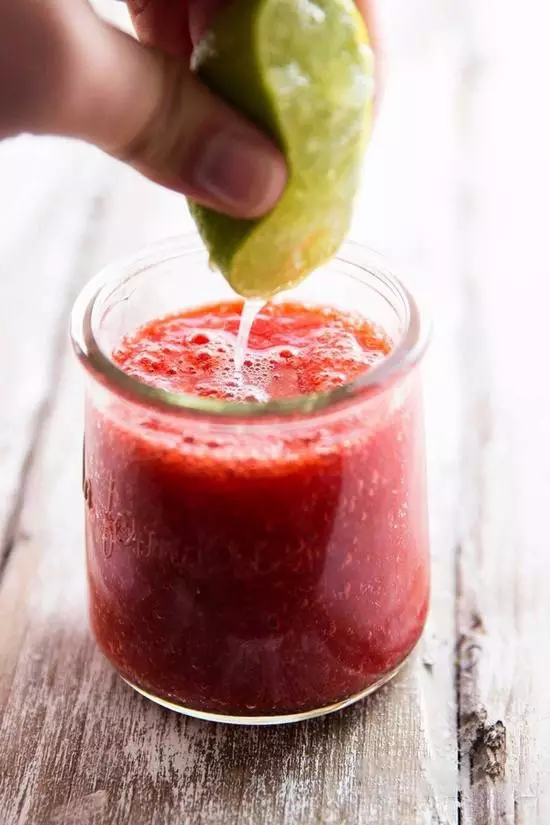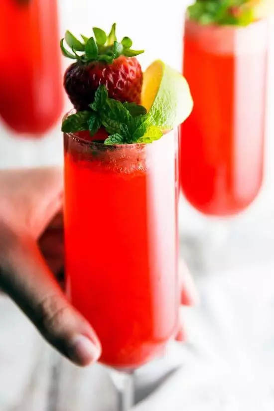 1.將草莓洗干凈,取出一部分放入攪拌機中,倒入香檳在其中攪拌。