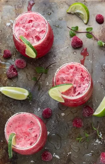 1.將樹莓、橙子、酸橙汁和蘇打水倒入攪拌器當中打碎。