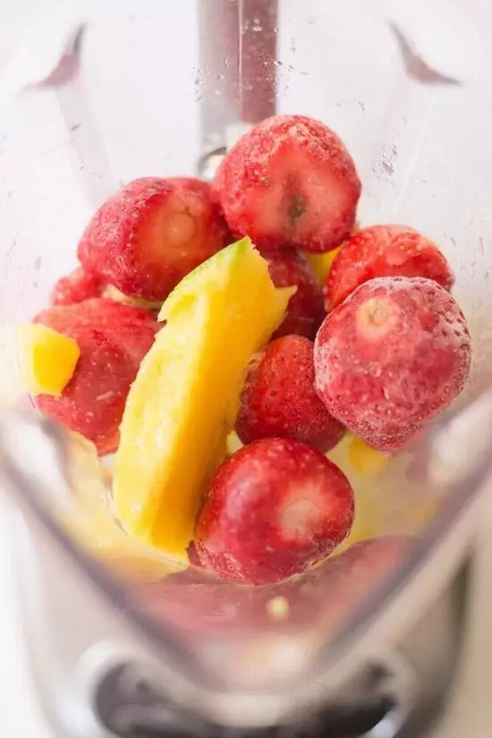 - 將草莓、芒果、冰塊和龍舌蘭酒倒入攪拌機里,將其打碎。