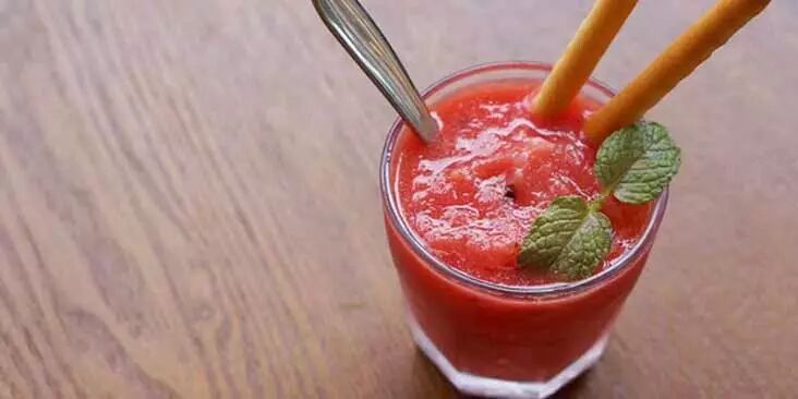 ??以前我們制作西瓜冰沙,習慣用西瓜肉加冰,如果口味不夠,再加上一點西瓜濃漿。但總有點“水”的感覺。如果將西瓜肉凍成冰塊,再打成冰沙,味道絕對正,美味與營養(yǎng)更不會流失。?