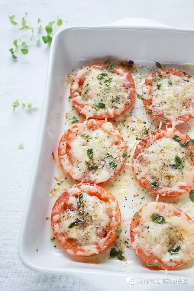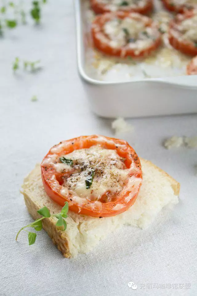 制作步驟:1.烤箱預(yù)熱至230攝氏度。2.西紅柿切25px厚片,放在鋪了烘焙紙的烤盤上,然后撒上芝士碎、牛至葉、鹽和黑椒,最后淋一點(diǎn)橄欖油。3.放入烤箱烤大約10-15分鐘,直到西紅柿變軟,芝士融化而且表面微微焦黃即可。