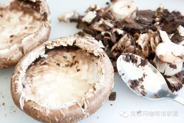 2.用勺子挖掉一點(diǎn)蘑菇肉。