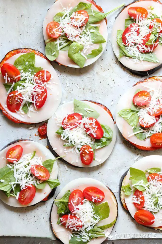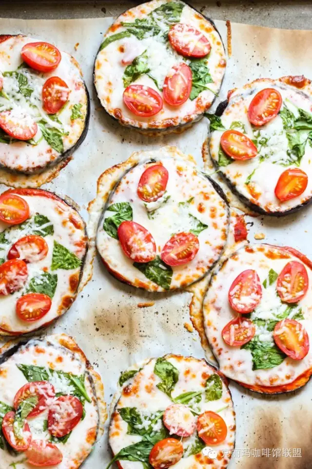 材料:2個(gè)大茄子(外形粗短的那種,切1英吋厚片)、24盎司蒜香西紅柿Pizza醬或意粉醬、20片provolone芝士(你也可以用馬蘇里拉芝士,但首選低脂版本)、3-4盎司新鮮小西紅柿(切片)、1杯新鮮菠菜葉、1/2茶匙鹽、黑椒適量制作步驟: