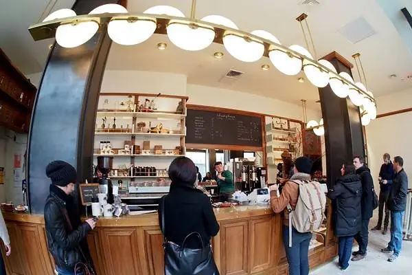 2010年9月紐約的二店開門,稱為泡煮吧(brew bar),只賣濾泡式咖啡,主攻六款咖啡器具:法壓壺,Chemex,德國手沖濾杯Melitta,Hario濾杯V60,愛樂壓還有聰明杯。店內(nèi)提供隨產(chǎn)季不同的35種咖啡豆(多的我嚇duang了。。。),這也彰顯出手沖等濾泡式開始在美國吃香了。原來被認(rèn)為是簡陋粗俗的全人工泡煮反而開始反攻機(jī)器沖煮,實(shí)在有意思