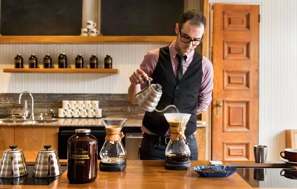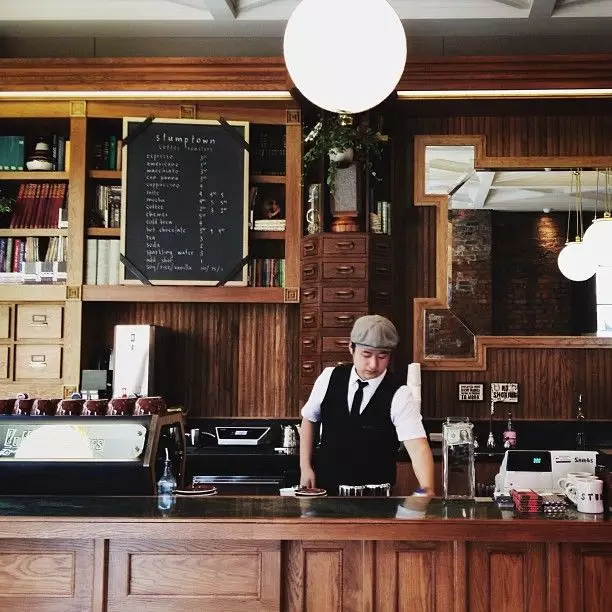2009年9月樹墩城在紐約曼哈頓開張一店,被譽(yù)為東部最酷咖啡店,咖啡師們身著五六十年代紳士帽和領(lǐng)帶,往往雙手開工沖煮咖啡,咖啡廳內(nèi)只有立桌站位沒有座位,最嗜潮的紐約人蜂擁至此,就為了嘗嘗名聞美帝的卷發(fā)器(Hair Bender)拼配濃縮咖啡或者是手沖莊園咖啡。杜安為了紐約店的生意,還是在紐約布魯克林開了個(gè)烘焙廠,免得從波特蘭運(yùn),降低咖啡新鮮度(波特蘭在美帝最西,紐約在美帝最東,隔了幾個(gè)時(shí)區(qū))