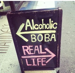 「波霸7號」從一開始,每天的營業(yè)額只有70美元,如今已成長了10倍,店雖然不大,位置不醒目,但是他在餐廳門口放了一塊十分吸睛的廣告牌,左邊的箭頭指向波霸店,寫著「波霸酒精」(Alcoholic Boba),右邊的箭頭指向街道「真實生活」(Real Life),很有他的風(fēng)格。