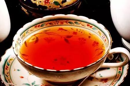 3-4月的一號(hào)茶多為青綠色,5-6月二號(hào)茶為金黃。其湯色橙黃,氣味芬芳高雅,上品尤其帶有葡萄香,口感細(xì)致柔和。大吉嶺紅茶最適合清飲,但因?yàn)椴枞~較大,需稍久燜(約5分鐘)使茶葉盡舒,才能得其味。下午茶及進(jìn)食口味生的盛餐后,最宜飲此茶。