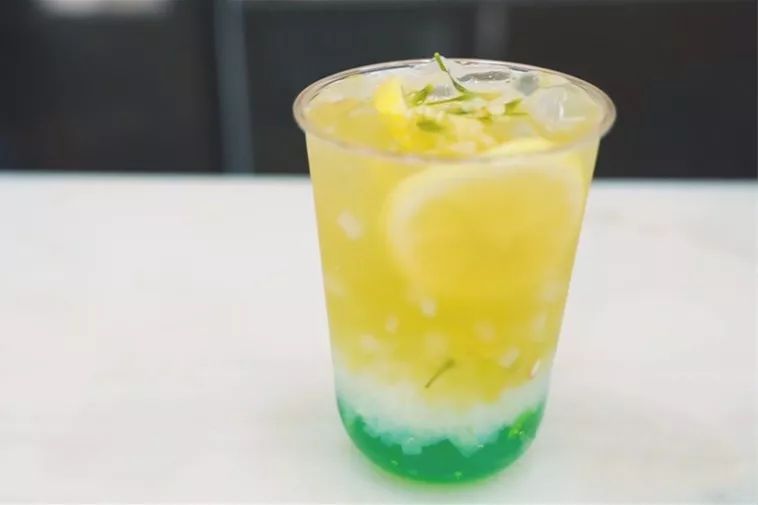 一眼看過去青色的薄荷水晶和白色椰果沉淀在杯子底,上面覆蓋著淡黃色的檸檬片和茶湯,這種文藝小清新的風格真是像極了初戀清純的感覺。