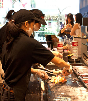 看店員們準備冰淇淋也是一種樂趣。他們可不是中規(guī)中矩地準備冰淇淋,時不時就會來幾個高拋、遠投的動作,果然是練過的吶!而且在你買冰淇淋的時候,店員可能會問你要不要自己接冰淇淋(如果你知道有這么回事,也可以直接要求)。這時你可以自己拿著杯子去接他們拋出來的冰淇淋球。