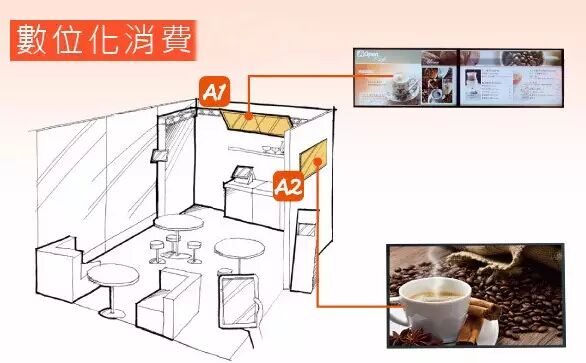 其次采用數(shù)位廣告牌,其所呈現(xiàn)的美味餐點畫面,對店外顧客做直接的視覺吸引力,增加潛在顧客入店消費機會,同時可做促銷活動的訊息傳遞媒介。能有效建立店家形象,加深消費者印象,增加潛在消費者入店體驗的決策,品牌可針對特定區(qū)域,特定時段提供精準(zhǔn)廣告內(nèi)容及促銷訊息。