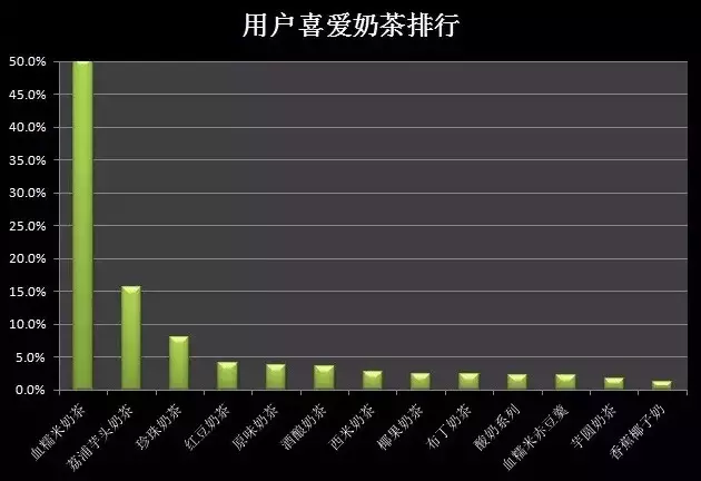 以上數(shù)據(jù)表明,年齡段在20-29歲的女性用戶是奶茶的主力消費人群。