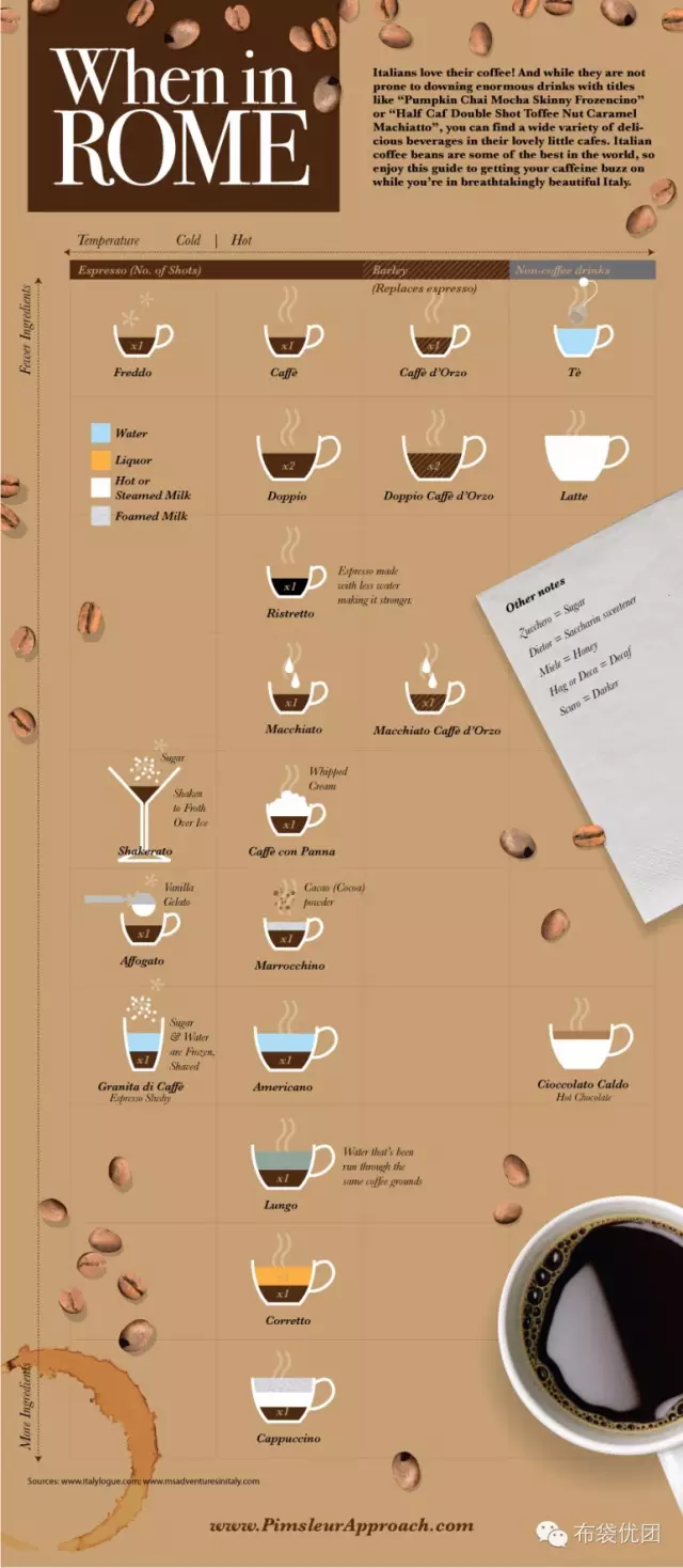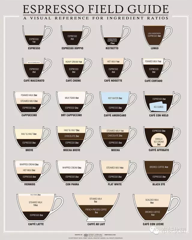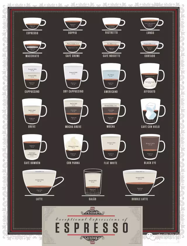 這才是意式咖啡大家族的本體。甚至說還有一些獵奇的意式咖啡并未囊括在里面。因為除了拿鐵、卡布、摩卡、焦糖瑪奇朵、美式以外,其他種類的咖啡在國內(nèi)并沒有得到廣泛傳播以及認識,所以就連我這個咖啡玩家,也無法涵蓋所有的意式咖啡種類。事物都是由人定義的。如果在中國,借著星巴克的大旗傳播最迅猛的只有這些“拿鐵、卡布”之流,那么在布袋,我們的意式咖啡就等于這些“拿鐵、卡布”之流,不脫離群眾定義,這是我們的理念!
