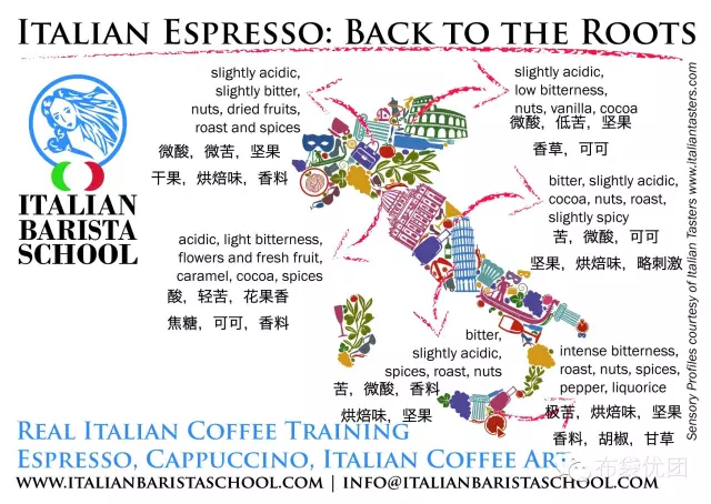 作為一個咖啡大國,用“深烘”一個詞來概括意大利咖啡實在有失偏頗,甚至是對意帝國咖啡的侮辱。由于意大利的統(tǒng)一僅是近百年的事情,所以意大利不同地區(qū)的咖啡豆“畫風(fēng)”也完全不同。