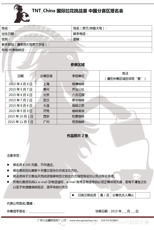 咖啡沙龍作為TNT-China 拉花大賽的全程媒體贊助商,將陸續(xù)為您呈現(xiàn)各區(qū)比賽。盡請(qǐng)期待!!