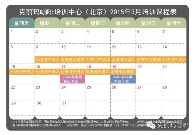 克麗瑪咖啡培訓中心3月課程表【北京】