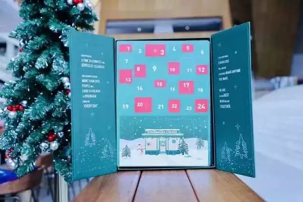 星巴克圣誕第一波“萌寵杯”同樣在11月26日,星巴克還上線了“24天圣誕奇夢倒數(shù)日歷”。這款“倒數(shù)日歷”有著24個小盒子,每個盒子里都有著一款未知的禮物,在圣誕倒計時中,每天都有一個驚喜。